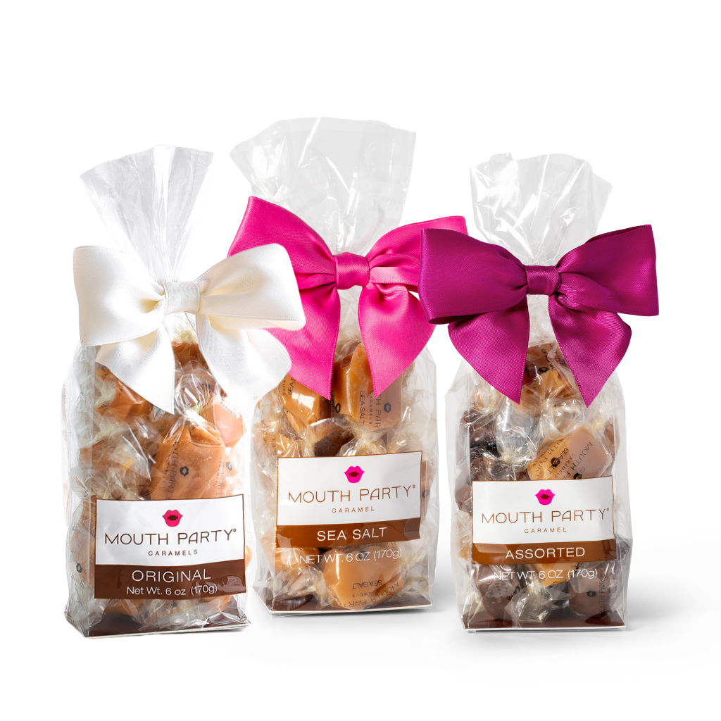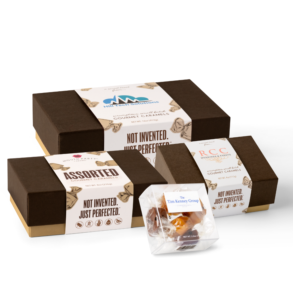 Choosing just the right expression of appreciation reflects how much you value your clients and employees. How about giving irresistible gourmet caramels made in small batches with love? We've got you covered for any and all corporate gifting needs. Our caramels are perfect for a client thank you, holiday gifting, employee appreciation, travel sales team meeting gifts, referral gifting, employee welcome gifts, and more!